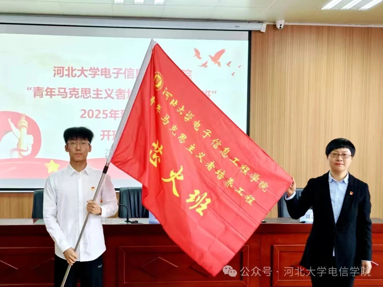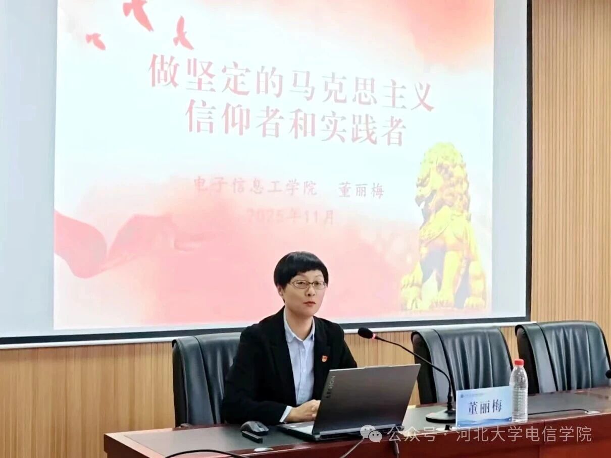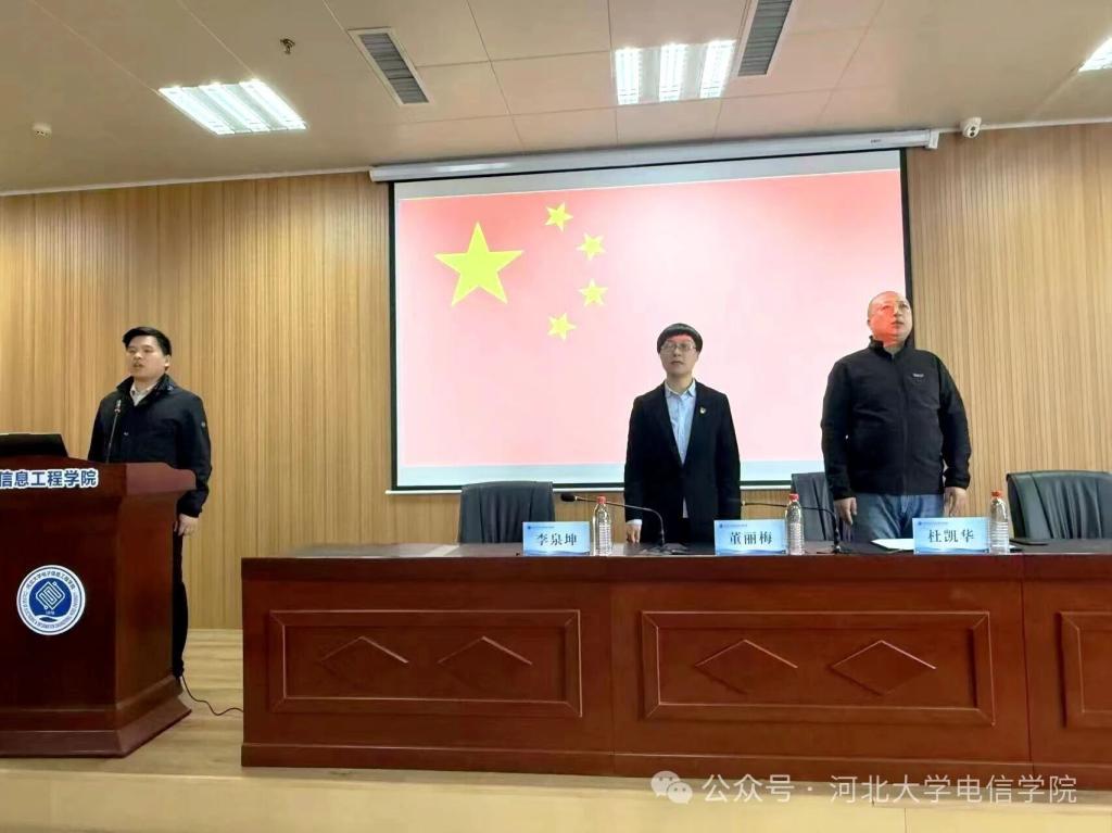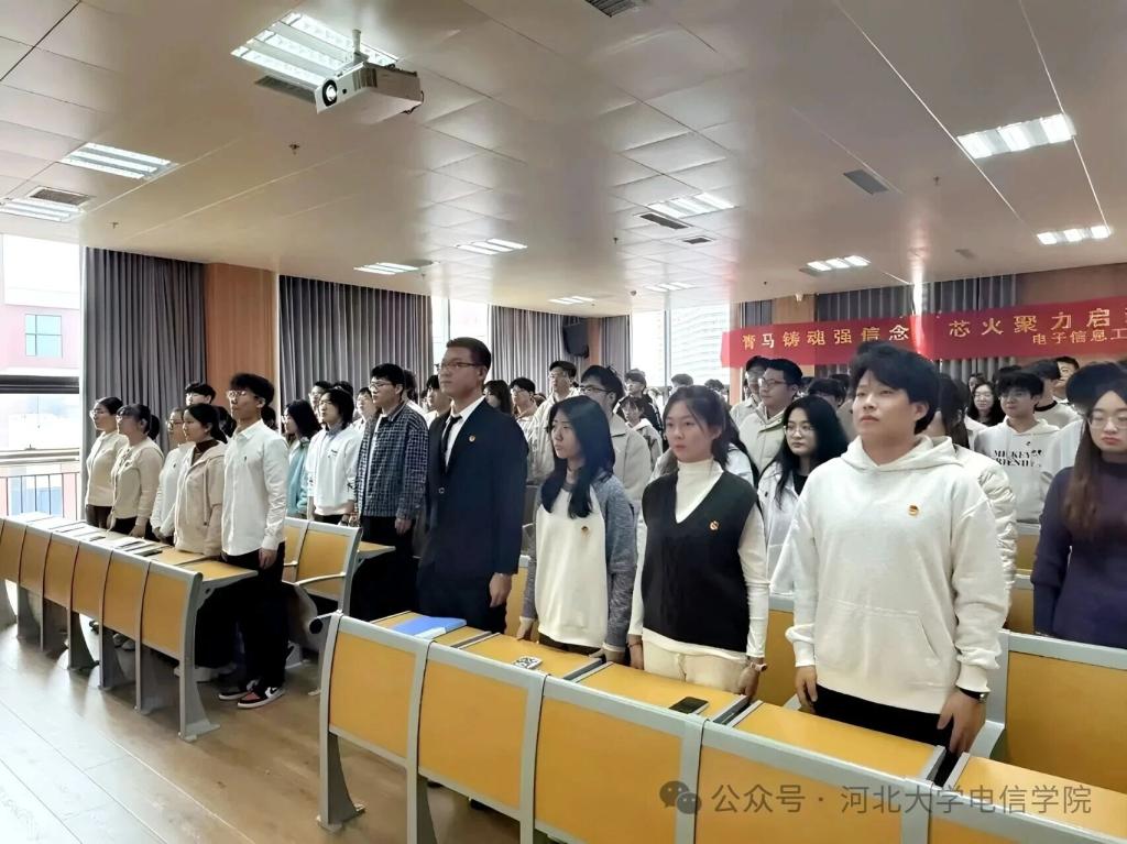2025年11月26日,河北大学电子信息工程学院2025年秋季“青年马克思主义者培养工程·芯火班”开班仪式在七一路校区隆重举行。电子信息工程学院党委书记董丽梅、党委副书记杜凯华、学院团委书记李泉坤、团委老师刘志佳出席本次会议,会议由团委书记李泉坤主持,“芯火班”全体学员参加活动。