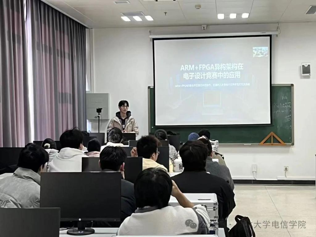 宣讲会伊始,负责竞赛指导的张坤老师详细介绍了蓝桥杯电子类赛事的整体框架与赛道分类。从嵌入式设计与开发、单片机设计与开发,到FPGA设计与开发、EDA设计等热门方向,老师结合往年赛题趋势与行业技术发展,为同学们清晰地梳理了各赛道的特点、所需技术栈与能力要求。