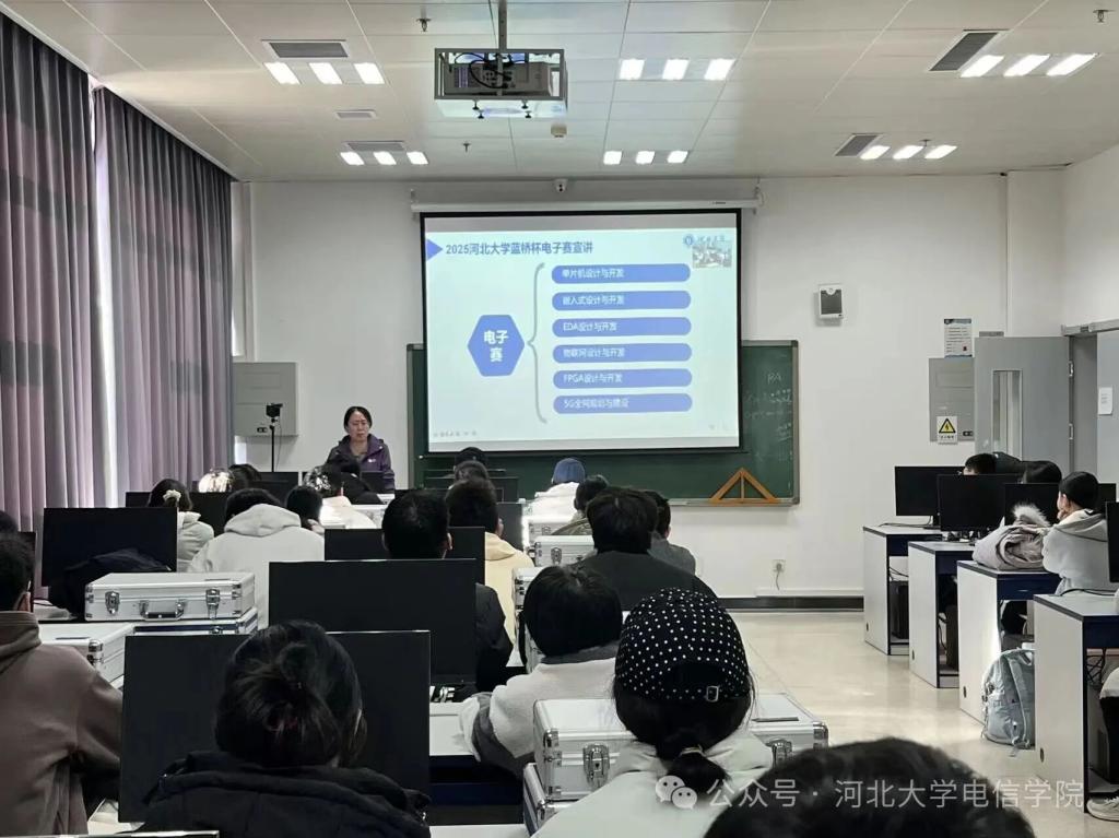 冬意渐浓,创新正当时。河北大学蓝桥杯电子类赛事校园宣讲会在热烈的氛围中顺利举行。此次宣讲会吸引了对电子设计、编程开发与技术创新充满热情的同学们齐聚一堂,共同拉开新一届蓝桥杯备赛的序幕。