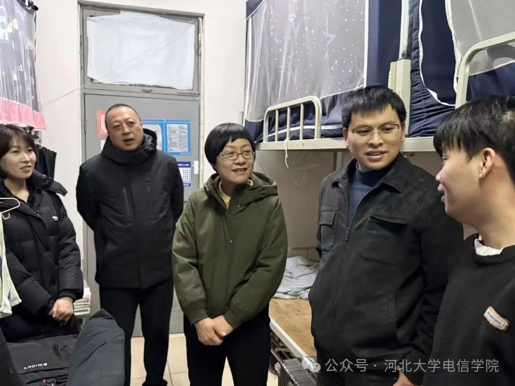 为切实筑牢学生宿舍安全防线,夯实文明宿舍建设基础,近日,电子信息工程学院党委书记董丽梅、党委副书记杜凯华与团委老师一行,深入各年级学生宿舍,开展安全卫生专项检查及冬日暖心座谈活动,把关怀与责任送到学子身边。