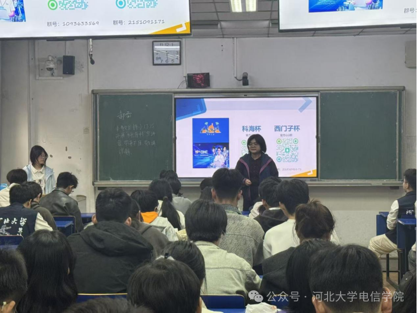 宣讲会最后,协会负责人韩蕾老师对本次宣讲会的核心内容进行全面总结,再次强调了“科海杯”的报名时间、报名方式等关键信息,提醒同学们务必及时完成报名表填写,加入赛事官方QQ群获取后续赛程安排等重要内容。同时,韩蕾老师鼓励在场同学们充分发挥专业所长,勇于挑战自我,积极组建团队报名参赛,在竞赛中锤炼实践能力、培养创新思维、增进团队协作,以饱满的热情和扎实的专业功底迎接赛事,借助“科海杯”的平台冲刺“西门子杯”省赛、国赛,展现河北大学学子的科创风采。